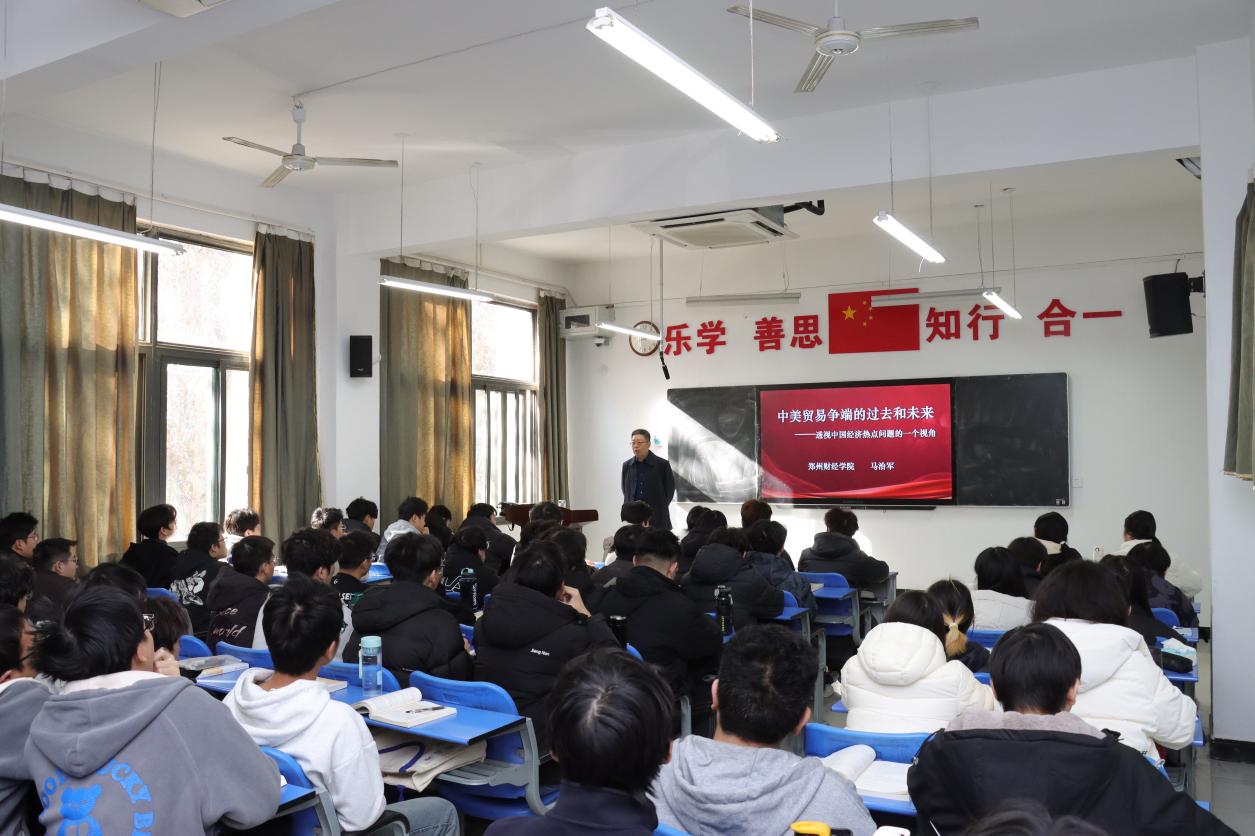 为深入贯彻党的二十届四中全会精神,全面落实习近平总书记关于思政课建设的重要指示,进一步加强我校思政课内涵式建设,充分发挥领导干部在立德树人中的示范引领作用,11月26日上午,校党委书记马治军以《中美贸易争端的过去和未来——透视中国经济热点问题的一个视角》为题,分别为我校24软工本4班、24智制本4班的学生讲授了一堂立意深远、内容翔实的思政课,引导青年学子在百年未有之大变局中认清大势、坚定自信、勇担使命。